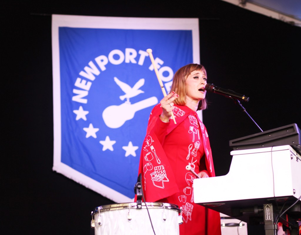 (Photo by Aimsel Ponti)Jess Wolfe of Lucius goes to town on a drum during the Newport Folk Festival on July 27, 2025. (Photo by Aimsel Ponti)Holly Laessig and Jess Wolfe of Lucius with Mavis Staples at the Newport Folk Festival on July 27, 2025.
