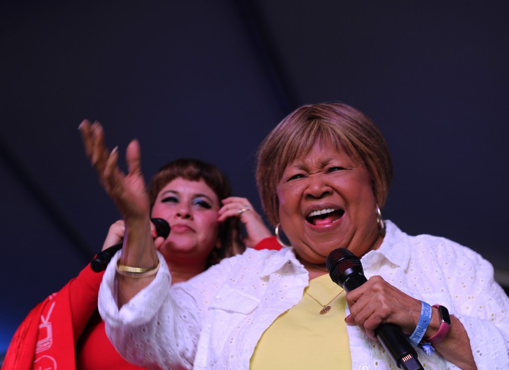 (Photo by Aimsel Ponti)Lucius’ Jess Wolfe with Mavis Staples on July 27, 2025 during the Newport Folk Festival.