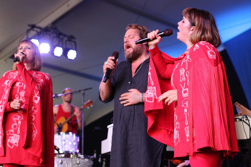 Photo by Aimsel PontiNathaniel Rateliff on stage with Lucius during the Newport Folk Festival on July 27, 2025.